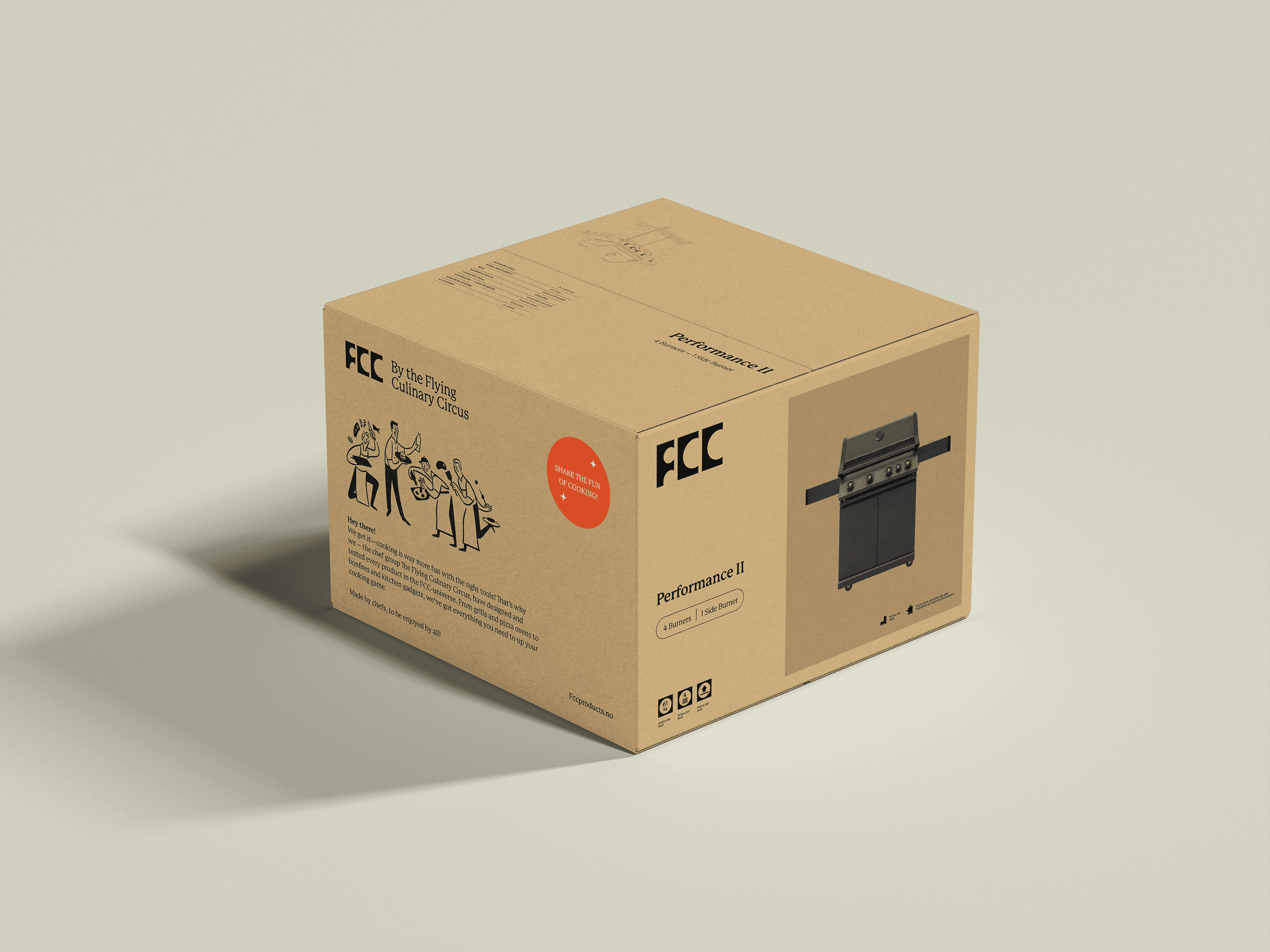 FCC was founded with a vision to develop professional kitchenware and cooking products that more people can enjoy — starting with high-quality grills at affordable prices. The brief was to develop a new brand identity, taking them from «FCC BBQ» to simply FCC: broadening the focus from grills to encompass their full product range: pizza ovens, fire pits and outdoor furniture with food as the central point of gravity.